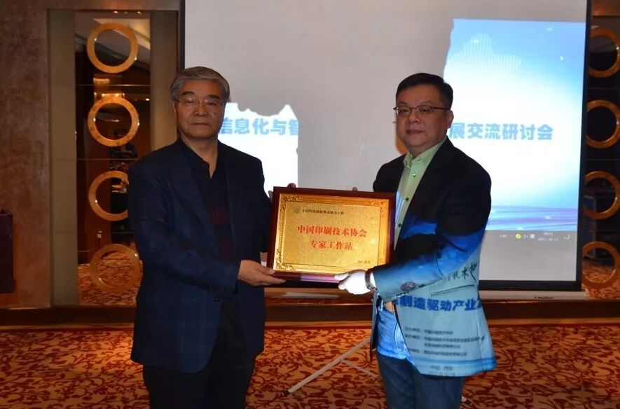 党的十八大明确提出了国家要实施创新驱动发展的战略,为此,中国科协提出了实施创新驱动助力工程的意见,明确指出要提高国家学会及各地方学会在企业创新发展转型升级中的主动作为能力,为地方经济建设发挥更大作用。以信息化和智能制造为抓手,利用协会的专家资源,助力地方企业实现转型升级,正是中国印协创新驱动助力工程的重要内容。作为药包领域的佼佼者,西安环球一直非常注重创新发展,在中国印协专家的帮助下企业的信息化项目建设取得阶段性成果。此次会议的举办,既是对前期成果的总结和展示,又是对会企合作进行科技攻关模式的推广和深化。会上,中国印刷技术协会副理事长许文才代表中国印刷技术协会将“中国印刷技术协会专家工作站”的牌匾授予西安环球印务股份有限公司,以期双方今后能够有更多的交流与合作,建立联合创新平台,中国印协也将会在今后尽力提供更多的咨询建议以及系统服务。